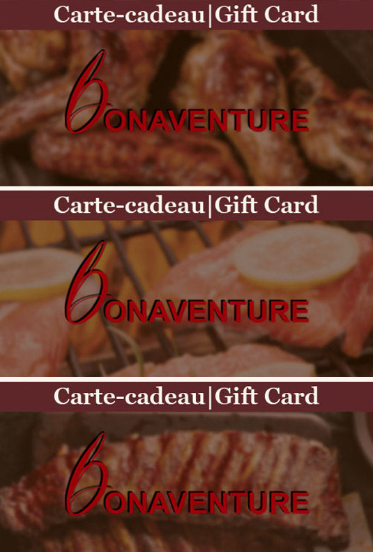 Offrez le cadeau de la convenance, du choix, de la flexibilité et surtout, des produits alimentaires de qualité, des sels fumés et de nos mélanges d'épices entièrement naturels avec une carte-cadeau Bonaventure. La vie est suffisamment compliquée - n'ajoutez pas plus de stress.