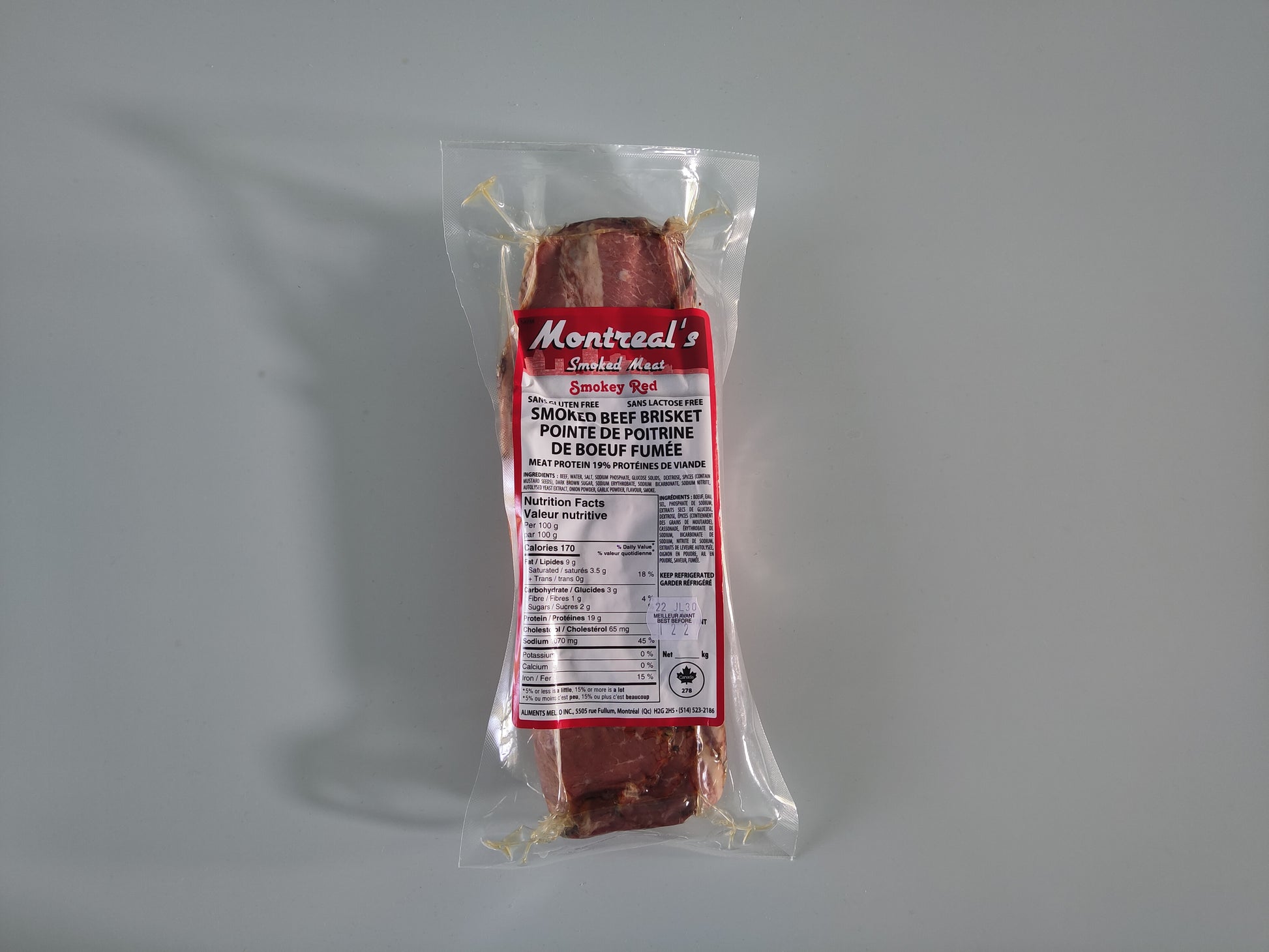 Notre incroyable viande fumée de style montréalais "Smokey Red" est maintenant disponible en paquets d'une livre ! Profitez d'une quantité suffisante de viande fumée pour préparer 2 sandwichs géants ou 3 sandwichs ordinaires, le tout dans un seul emballage !